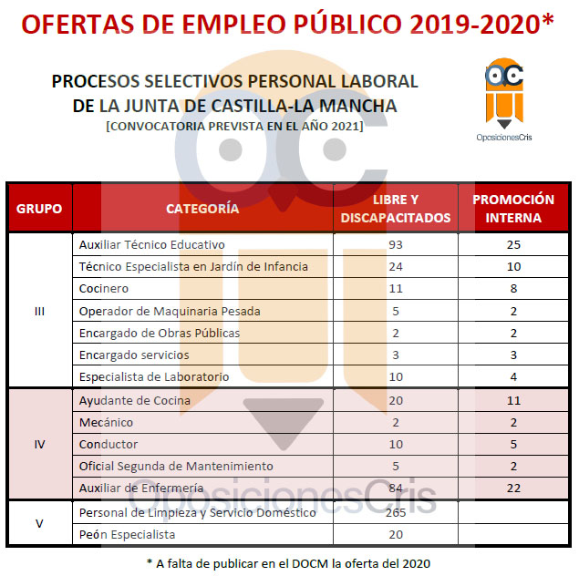 Al final de la entrada se puede ver la Oferta de Empleo Público de la Junta de Comunidades de Castilla-La Mancha correspondiente a los años 2019 y 2020.