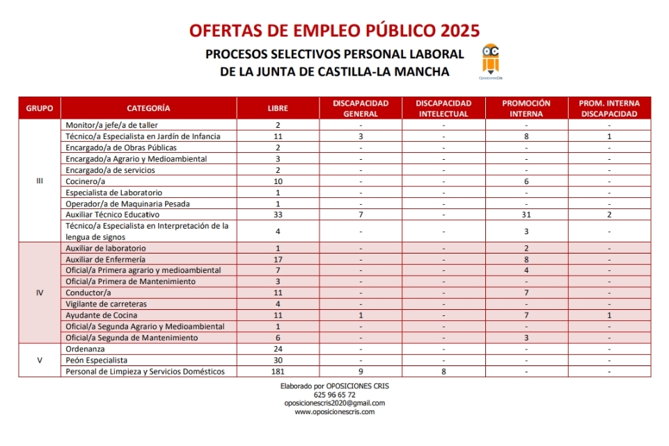 En principio las categorías que se prepararán en «Oposiciones Cris» son: