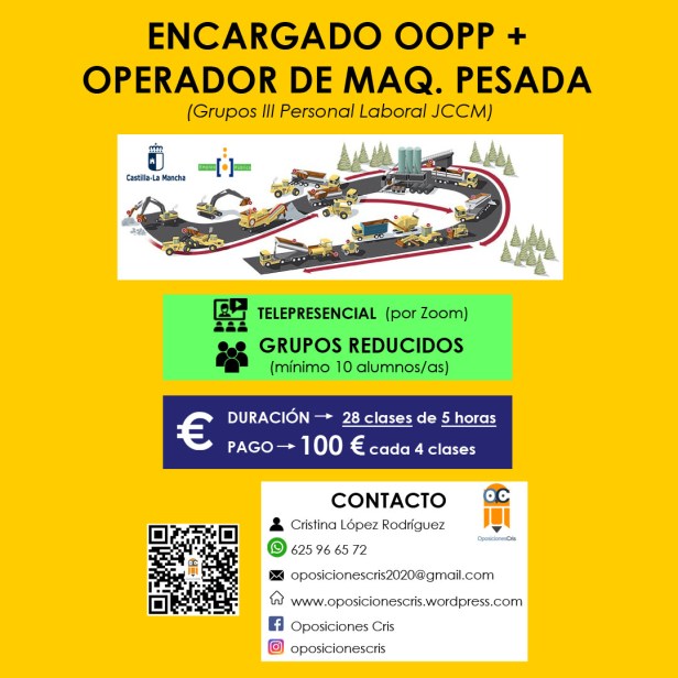 ENCARGADO DE OBRAS PÚBLICAS + OPERADOR DE MAQUINARIA PESADA – Lunes de 16:30 a 21:30 h