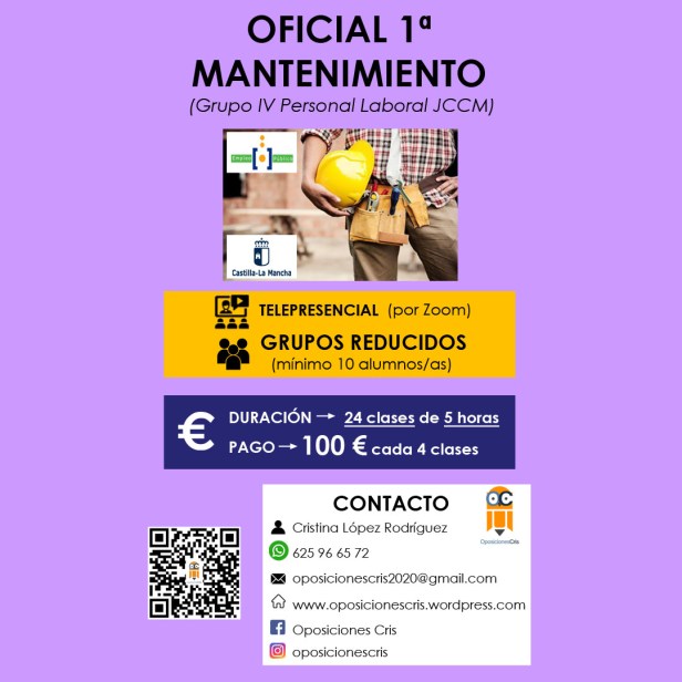 OFICIAL 1 MANTENIMIENTO – Martes de 16:30 a 21:30 h