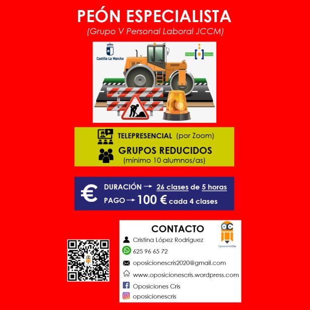 PEÓN ESPECIALISTA – Viernes de 16:30 a 21:30 h